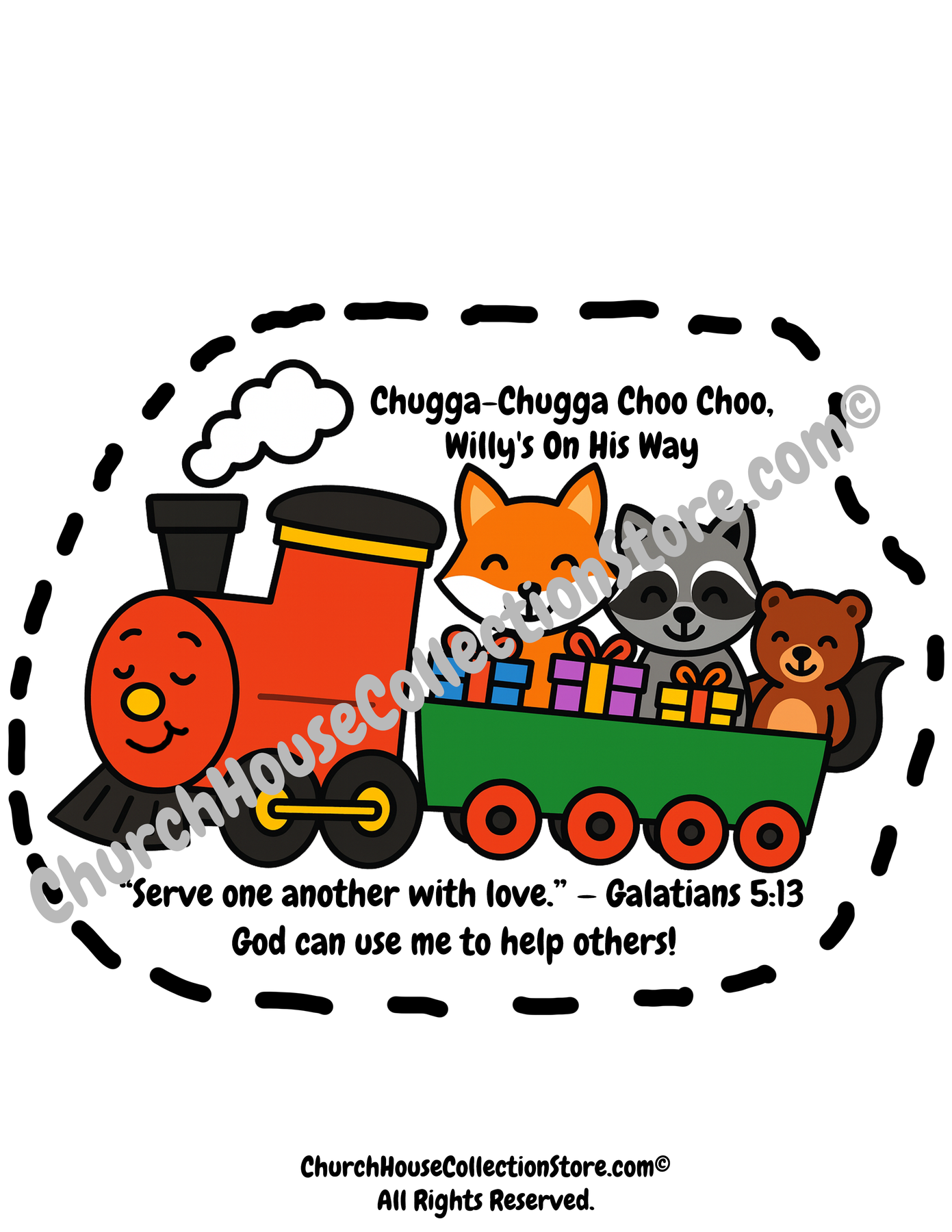 Kids will love building their own cheerful Christmas train while learning that serving others is a way to show God’s love.